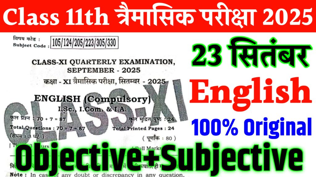 प्यारे बच्चों इस पोस्ट के माध्यम से हमलोग देखने की, किस तरीके से आप लोग कक्षा 11वीं त्रैमासिक परीक्षा सितंबर 2025 अंग्रेजी का वायरल क्वेश्चन पेपर कैसे डाउनलोड कर सकते हैं। तो नीचे दी गई संपूर्ण जानकारी को अच्छे से पढ़ें।