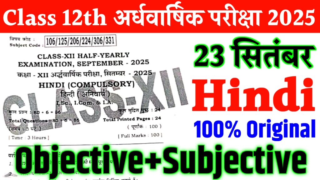 प्यारे बच्चों इस पोस्ट के माध्यम से हमलोग देखने की, किस तरीके से आप लोग कक्षा 12वीं अर्धवार्षिक परीक्षा सितंबर 2025 हिन्दी का वायरल क्वेश्चन पेपर कैसे डाउनलोड कर सकते हैं। तो नीचे दी गई संपूर्ण जानकारी को अच्छे से पढ़ें।