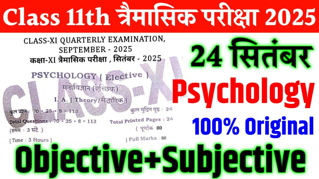 प्यारे बच्चों इस पोस्ट के माध्यम से हमलोग देखने की, किस तरीके से आप लोग कक्षा 11वीं त्रैमासिक परीक्षा सितंबर 2025 मनोविज्ञान का वायरल क्वेश्चन पेपर कैसे डाउनलोड कर सकते हैं। तो नीचे दी गई संपूर्ण जानकारी को अच्छे से पढ़ें।