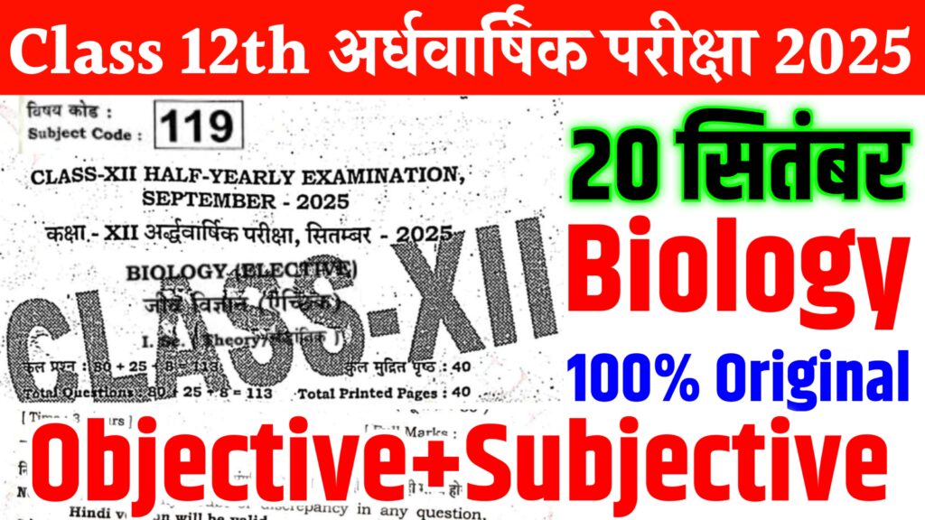 20 September Bihar Board Class 12th Biology Half Yearly Exam Viral Question Paper 2025 प्यारे बच्चों इस पोस्ट के माध्यम